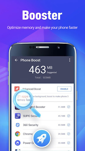 Powered by a world-class virus detection engine, Super Cleaner protects your device from all virus attacks and any other threats.