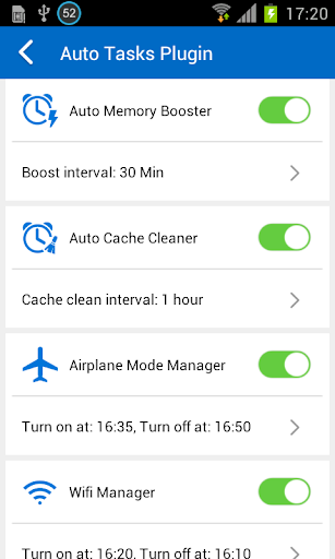 Set auto task for cache clean, boost, wifi manager and do not disturb mode