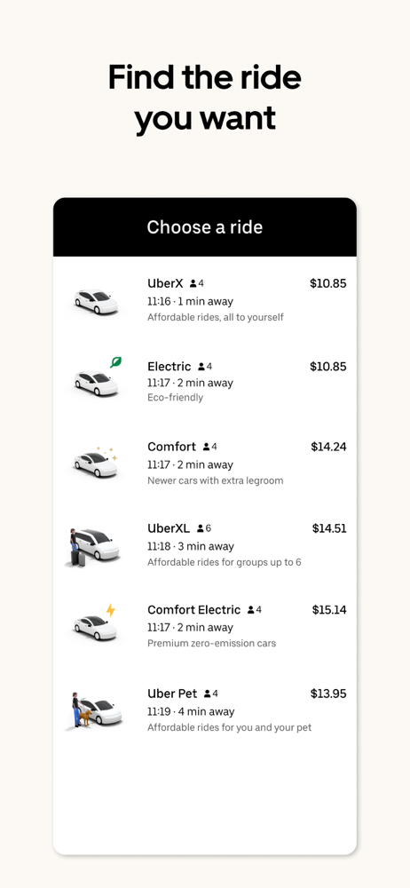 - UberX: Affordable rides, All to yourself