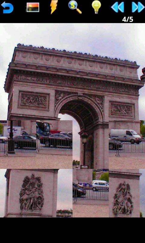 The photo will be cut into 3x3 or 4x4 disarranged pieces. You must put all puzzle pieces at the correct position. You can press “Hint” to check the whole photo or press “introduction” to see the information of the place. When you complete it, you can set the photo as your wallpaper and go to next game.
